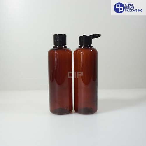 Botol Pet Amber 250 ml-Fliptop Hitam