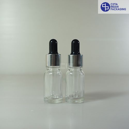 Botol Pipet Tebal 10 Ml Bening–Ring Silver Karet Hitam