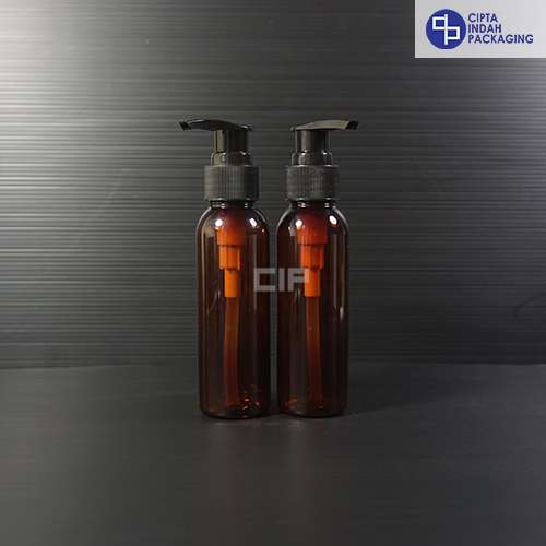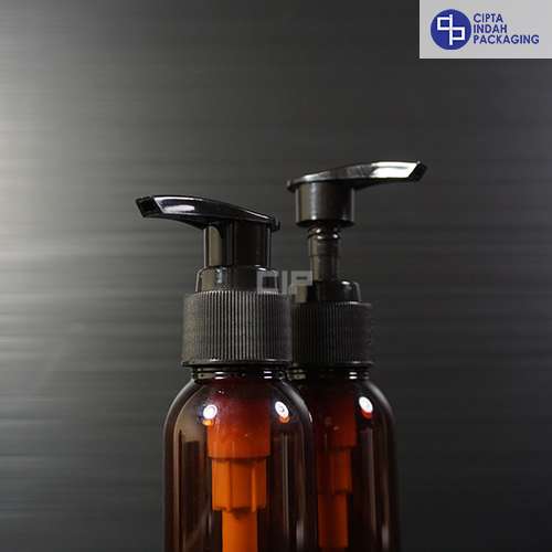 Botol Pump 100 ml Coklat-Tutup Hitam